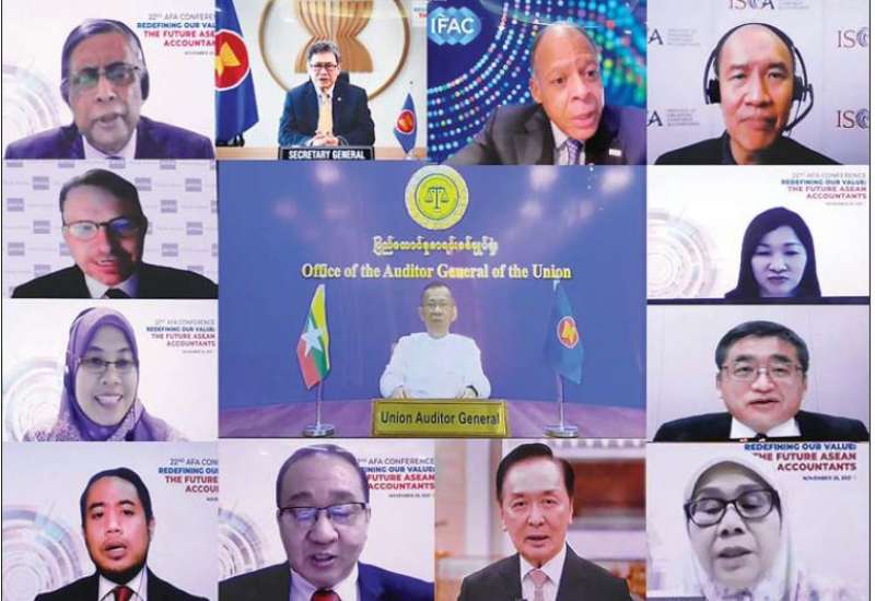 အရှေ့တောင်အာရှနိုင်ငံများဆိုင်ရာ စာရင်းကိုင်များ အဖွဲ့ချုပ် (ASEAN Federation of Accountants-AFA) နှင့် မြန်မာနိုင်ငံလက်မှတ်ရ ပြည်သူ့စာရင်းကိုင်များအသင်း (Myanmar Institute of Certified Public Accountants-MICPA) တို့ ပူးပေါင်းပြီး အင်ဒိုနီးရှားနိုင်ငံ AFA အတွင်းရေးမှူးရုံးက ယနေ့နံနက် ၈ နာရီတွင် ဗီဒီယိုကွန်ဖရင့်စနစ်ဖြင့် ကျင်းပသည့် အရှေ့တောင်အာရှ နိုင်ငံများဆိုင်ရာ စာရင်းကိုင် များအဖွဲ့ချုပ်၏ (၂၂) ကြိမ်မြောက် ညီလာခံသို့ ပြည်ထောင်စုစာရင်းစစ်ချုပ်၊ မြန်မာနိုင်ငံ စာရင်းကောင်စီဥက္ကဋ္ဌ၊ မြန်မာနိုင်ငံလက်မှတ်ရ ပြည်သူ့စာရင်းကိုင်များအသင်း နာယကပါမောက္ခဒေါက်တာ ကံဇော် ပါဝင်တက်ရောက်သည်။