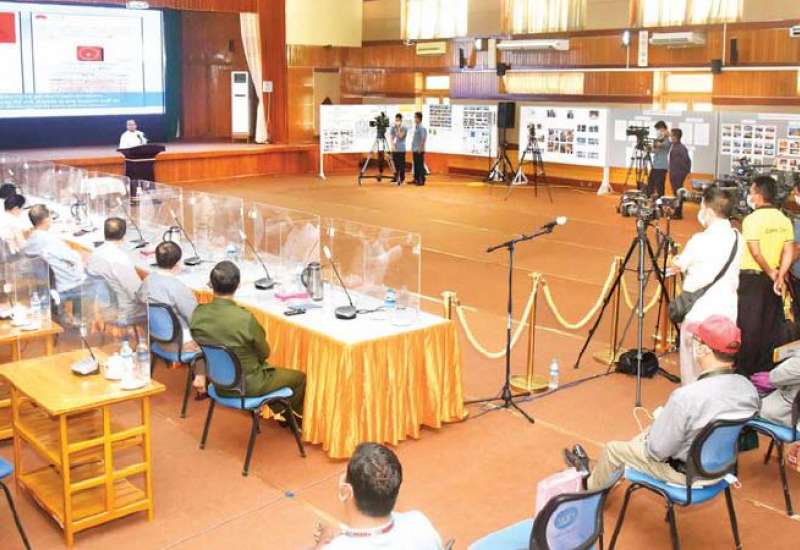 နိုင်ငံတော်စီမံအုပ်ချုပ်ရေးကောင်စီ၊ သတင်းထုတ်ပြန်ရေးအဖွဲ့၏ ၁၀/၂၀၂၁ ကြိမ်မြောက် သတင်းစာရှင်း လင်းပွဲကို ယနေ့နေ့လယ်ပိုင်းတွင် ပြန်ကြားရေးဝန်ကြီး ဌာန၌ ကျင်းပပြုလုပ်ပြီး နိုင်ငံတော်စီမံအုပ်ချုပ်ရေး ကောင်စီ၊ သတင်းထုတ်ပြန်ရေး အဖွဲ့ခေါင်းဆောင် ဗိုလ်ချုပ် ဇော်မင်းထွန်း၊ ပြည်ထောင်စုရွေးကောက်ပွဲကော်မရှင် အဖွဲ့ဝင် ဉီးခင်မောင်ဉီး၊ ဌာနဆိုင်ရာများမှ ပြောရေးဆိုခွင့်ရှိ သူများနှင့် ဌာနဆိုင်ရာ သတင်းထုတ်ပြန်ရေးအဖွဲ့ ကိုယ်စားလှယ်များက သတင်းမီဒီယာများ၏ သိရှိလို သည့် မေးမြန်းမှုများကို ပြန်လည်ဖြေကြားသည်။