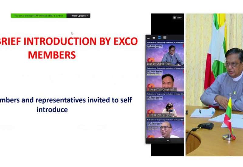 အာရှပစိဖိတ်အင်ဂျင်နီယာအသင်းများ၏ အသင်းချုပ်၊ Federation of Engineering Institutions of Asia and Pacific (FEIAP)၏ (၁၃)ကြိမ်မြောက် အလုပ်အမှုဆောင်အဖွဲ့ အစည်းအဝေးကို ယနေ့မွန်းလွဲပိုင်းက မလေးရှား နိုင်ငံ ကွာလမ်လာပူမြို့၌ Virtual စနစ် ဖြင့်ကျင်းပရာ Federation of Engineering Institutions of Asia and Pacific ၏ ဒုတိယ ဥက္ကဋ္ဌ၊ မြန်မာနိုင်ငံ အင်ဂျင်နီယာကောင်စီ နာယက၊ စက်မှုဝန်ကြီးဌာန ပြည်ထောင်စုဝန်ကြီး ဒေါက်တာချာလီသန်းသည် နေပြည်တော်ရှိ စက်မှုဝန်ကြီးဌာနမှ ပါဝင်တက်ရောက်သည်။