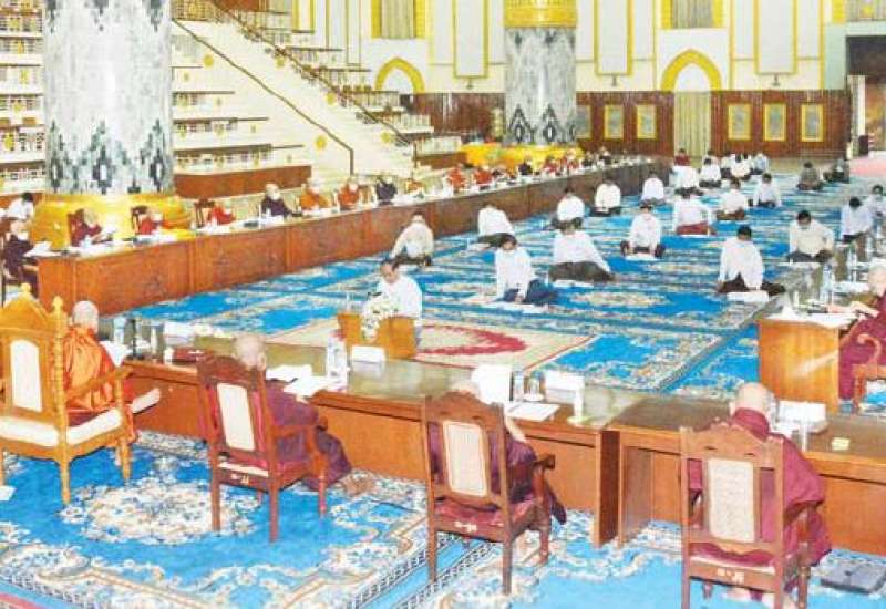 ပြည်ထောင်စုသမ္မတမြန်မာနိုင်ငံတော် အဋ္ဌမအကြိမ် နိုင်ငံတော်သံဃမဟာနာယကအဖွဲ့ (၄၇)ပါးစုံညီ နဝမအစည်းအဝေးကို ယနေ့နံနက် ၈ နာရီတွင် ရန်ကုန်မြို့ သီရိမင်္ဂလာ ကမ္ဘာအေးကုန်းမြေရှိဆဋ္ဌသင်္ဂါယနာ မဟာပါသာဏလိုဏ်ဂူသိမ်တော်ကြီး၌ ကျင်းပသည်။