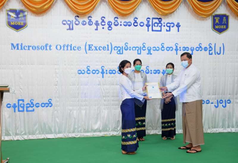 လျှပ်စစ်နှင့်စွမ်းအင်ဝန်ကြီးဌာန Microsoft Office (Excel) ကွန်ပျူတာ ကျွမ်းကျင်မှုသင်တန်းဆင်းပွဲ အခမ်းအနားကို ယနေ့နံနက် ၉ နာရီခွဲတွင် နေပြည်တော်ရှိ လျှပ်စစ်နှင့်စွမ်းအင်ဝန်ကြီးဌာန ဗဟိုသင်တန်း ကျောင်း၌ ကိုဗစ်-၁၉ ကာကွယ်ရေးနည်းစနစ်များနှင့်အညီ ကျင်းပသည်။