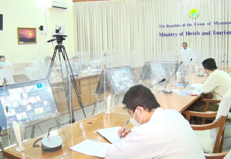 ကုန်သွယ်မှုမြှင့်တင်ရေးနှင့် မြန်မာ့ထုတ်ကုန်များ တိုးချဲ့တင်ပို့နိုင်ရေးအတွက် ပြည်ပနိုင်ငံ (၁၃) နိုင်ငံတွင် တာဝန်ထမ်းဆောင် နေကြသော မြန်မာစီးပွားရေးသံမှူးများနှင့် တွေ့ဆုံဆွေးနွေးပွဲ (ပထမနေ့) ကို ယနေ့နံနက် ၁၀ နာရီတွင် စီးပွားရေးနှင့် ကူးသန်း ရောင်းဝယ်ရေး ဝန်ကြီးဌာန အစည်းအဝေးခန်းမ၌ Virtual စနစ်ဖြင့် ကျင်းပသည်။