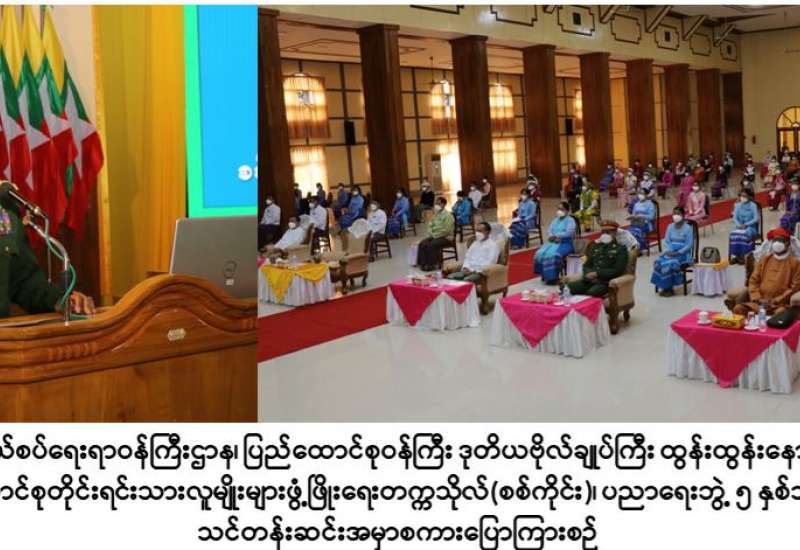 မြန်မာနိုင်ငံစာရင်းကောင်စီက ကြီးမှူးကျင်းပသည့် ၂၀၂၀-၂၀၂၁ ဘဏ္ဍာရေးနှစ် ဒီပလိုမာ စာရင်းကိုင် (Diploma In Accounting- DA) (ပထမပိုင်း) သင်တန်းအမှတ်စဉ်- ၄၁ ဖွင့်ပွဲ အခမ်းအနားကို ယနေ့နံနက် ၉ နာရီတွင် ပြည်ထောင်စုစာရင်းစစ်ချုပ်ရုံး စုပေါင်း ခန်းမ၌ ကိုဗစ်-၁၉ စည်းမျဉ်း၊ စည်းကမ်းများနှင့်အညီ ကျင်းပသည်။