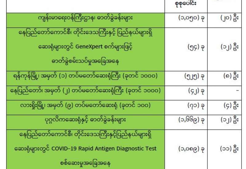 နိုင်ငံတော်အစိုးရအနေဖြင့် ကိုဗစ်-၁၉ ကပ်ရောဂါကြောင့် ထိခိုက်ခဲ့ရသည့် စီးပွားရေးလုပ်ငန်းများ အပြင် အုပ်ချုပ်ရေး၊ ကျန်းမာရေး၊ ပညာရေးကဏ္ဍပေါင်းစုံတို့ကို ပြန်လည်ကုစားသွားနိုင်ရေး ဘက်ပေါင်းစုံမှ အရှိန်အဟုန်မြှင့်ဆောင်ရွက်လျက်ရှိရာ ကျန်းမာရေး ဝန်ထမ်းများအနေဖြင့်လည်း ကိုဗစ်- ၁၉ ရောဂါကာကွယ်၊ ထိန်းချုပ်၊ ကုသရေးလုပ်ငန်းများနှင့် ပြည်သူလူထု၏ ကျန်းမာရေးစောင့်ရှောက်မှု လုပ်ငန်းများကို ရှေ့တန်းကျစွာဖြင့် နိုင်ငံ့ဝန်ထမ်းကောင်းပီသစွာ တာဝန်များကို ကျေပွန်စွာ ထမ်းဆောင်လျက်ရှိပြီး ထိုသို့တာဝန် ထမ်းဆောင်ရာတွင် ဆေးရုံ၊ ဆေးခန်းများသည် မရှိမဖြစ်လိုအပ် လျက်ရှိရာ လူနာများအတွက်လည်း များစွာအထောက်အကူ ဖြစ်သည့် အခန်းကဏ္ဍ၌လည်း ပါဝင်လျက်ရှိသည်။
