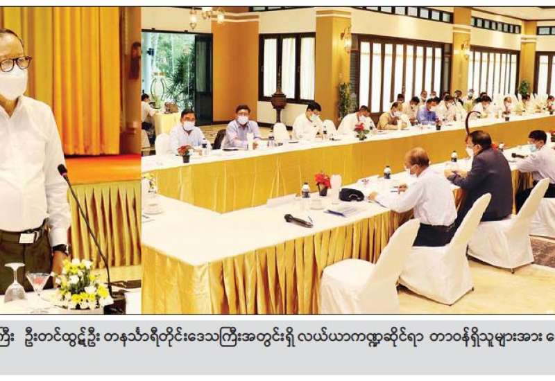 စိုက်ပျိုးရေး၊ မွေးမြူရေးနှင့် ဆည်မြောင်းဝန်ကြီးဌာန ပြည်ထောင်စုဝန်ကြီး ဦးတင်ထွဋ်ဦးသည် နိုဝင်ဘာ ၁၇ ရက် နံနက်ပိုင်းက ကော့သောင်းမြို့ ဗစ်တိုးရီးယား ဟိုတယ်ခန်းမ၌ တနင်္သာရီ တိုင်းဒေသကြီးအတွင်းရှိ လယ်ယာကဏ္ဍဆိုင်ရာ တာဝန် ရှိသူများနှင့် တွေ့ဆုံသည်။