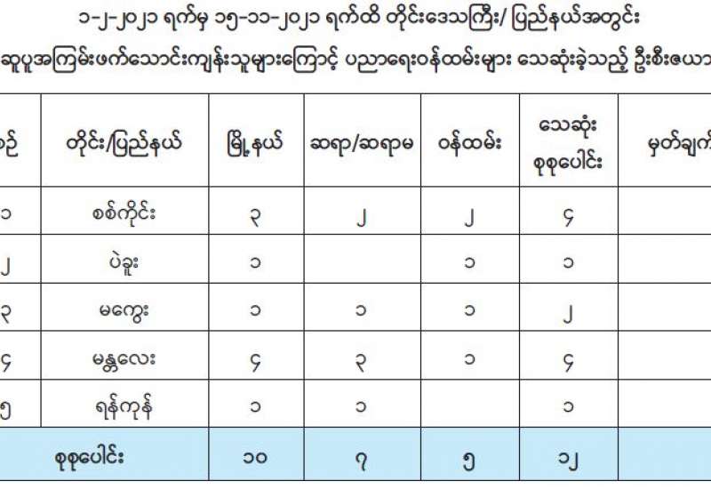 နိုင်ငံတော်စီမံအုပ်ချုပ်ရေးကောင်စီသည် နိုင်ငံတော်တည်ငြိမ်အေးချမ်းရေးနှင့် ဖွံ့ဖြိုး တိုးတက်ရေးအတွက် ရှေ့လုပ်ငန်းစဉ်များ ချမှတ်၍ တိုင်းရင်းသားပြည်သူများနှင့်အတူ လက်တွဲပူးပေါင်း ဆောင်ရွက်နေမှုအပေါ်တွင် မလိုလားသော အကြမ်းဖက်အုပ်စု များဖြစ်သည့် CRPH ၊ NUG၊ PDF စသည့် အဖွဲ့အစည်းများသည် နိုင်ငံတော်စီမံအုပ်ချုပ်ရေးကောင်စီ၏ ရှေ့ လုပ်ငန်းစဉ်များအား အကောင်ထည်ဖော် ဆောင်ရွက်ခြင်းမပြုနိုင်စေရန်၊ အစိုးရ၏အုပ်ချုပ်ရေး ယန္တားများ ပျက်ပြားစေရန်နှင့် ပြည်သူလူထုအား အကြောက်တရား လွှမ်းမိုးစေရန်အတွက် မြို့နယ်၊ ကျေးရွာ၊ ရပ်ကွက်များမှ အုပ်ချုပ်ရေးပိုင်းဆိုင်ရာ တာဝန်ရှိသူများအား အကြောင်း အမျိုးမျိုးပြ၍ နည်းလမ်းမျိုးစုံ အသုံးပြုကာ ရက်ရက်စက်စက် လုပ်ကြံသတ်ဖြတ်ခြင်းများ လုပ်ဆောင်လျက်ရှိရာ ထိခိုက်ဒဏ်ရာရရှိခြင်းများသာမက အချို့အသက်သေဆုံးသည်အထိ စိတ်မချမ်းမြေ့ဖွယ်ရာ ဖြစ်စဉ်ဖြစ်ရပ်များဖြစ်ပေါ်ခဲ့ရပြီး အကြမ်းဖက်အဖွဲ့များ၏ လုပ်ကြံ သတ်ဖြတ်မှုကြောင့် ၂၀၂၁ ခုနှစ်၊ဖေဖော်ဝါရီ ၁ ရက်မှ နိုဝင်ဘာ ၁၆ ရက်အထိ အုပ်ချုပ်ရေး ပိုင်းဆိုင်ရာ တာဝန်ရှိသူ ၁၉၈ ဦး ခန့် သေဆုံးခဲ့ရပြီး ၁၄၈ ဦးခန့် ဒဏ်ရာရခဲ့မှုများကို ဖော်ပြပါအတိုင်း တွေ့ရှိရသည်-