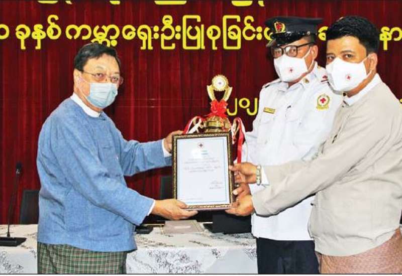မြန်မာနိုင်ငံကြက်ခြေနီအသင်း ၂၀၂၁ ခုနှစ်၊ ကမ္ဘာ့ ရှေးဦးပြုစုခြင်းနေ့အထိမ်းအမှတ် ရှေးဦးပြုစုခြင်း ဆိုင်ရာလုပ်ငန်းများတွင် ထူးချွန်ဆုရရှိသူများအား ဆုချီးမြှင့်ခြင်း အခမ်းအနားကို ယမန်နေ့နံနက်ပိုင်းကအသင်း ရန်ကုန်ရုံးခွဲ၌ပြုလုပ်ရာ မြန်မာနိုင်ငံ ကြက်ခြေနီအသင်းဥက္ကဋ္ဌ ဒေါက်တာမောင်မောင်မြင့် တက်ရောက်အမှာစကား ပြောကြားခဲ့သည်။