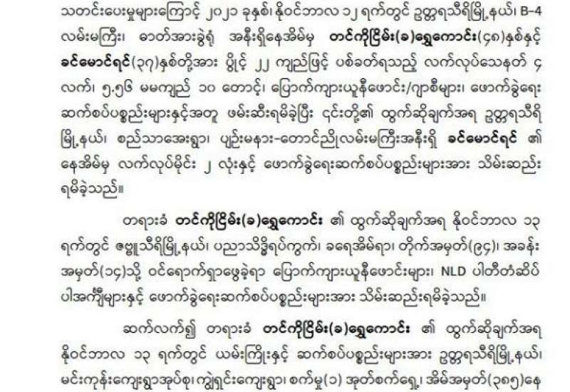 ၁။ ပြည်ထောင်စုရွေးကောက်ပွဲကော်မရှင်သည် ၂၀၂၀ ပြည့်နှစ် ပါတီစုံဒီမိုကရေစီ အထွေထွေရွေးကောက်ပွဲ မဲမသမာမှု တရားမဲ့ပြုကျင့်မှုများအပေါ် စုံစမ်းစစ်ဆေးတွေ့ရှိချက် အစီရင်ခံစာတွင်ပါရှိသော ရွေးကောက်ပွဲလုပ်ငန်းစဉ်များ၊ မဲမသမာမှုများနှင့် တရားမဲ့ပြုကျင့်မှု ဖြစ်စဉ်များတွင် ကျူးလွန် ပါဝင်ပတ်သက်ဆောင်ရွက်ခဲ့ကြသည့် နိုင်ငံတော်သမ္မတဟောင်း ဦးဝင်းမြင့်၊ နိုင်ငံတော်၏အတိုင်ပင်ခံပုဂ္ဂိုလ်ဟောင်း ဒေါ်အောင်ဆန်းစုကြည်၊