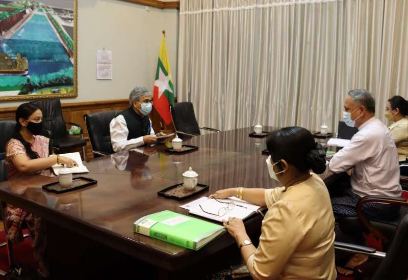 ရင်းနှီးမြှုပ်နှံမှုနှင့် နိုင်ငံခြားစီးပွားဆက်သွယ်ရေးဝန်ကြီးဌာန ပြည်ထောင်စုဝန်ကြီး ဦးအောင်နိုင်ဦးသည် မြန်မာနိုင်ငံဆိုင်ရာ အိန္ဒိယနိုင်ငံ သံအမတ်ကြီး H.E.Mr. Saurabh Kumar နှင့်အဖွဲ့အား ယနေ့မွန်းလွဲပိုင်းတွင် အဆိုပါဝန်ကြီးရုံး ဧည့်ခန်းမ၌ လက်ခံတွေ့ဆုံသည်။
