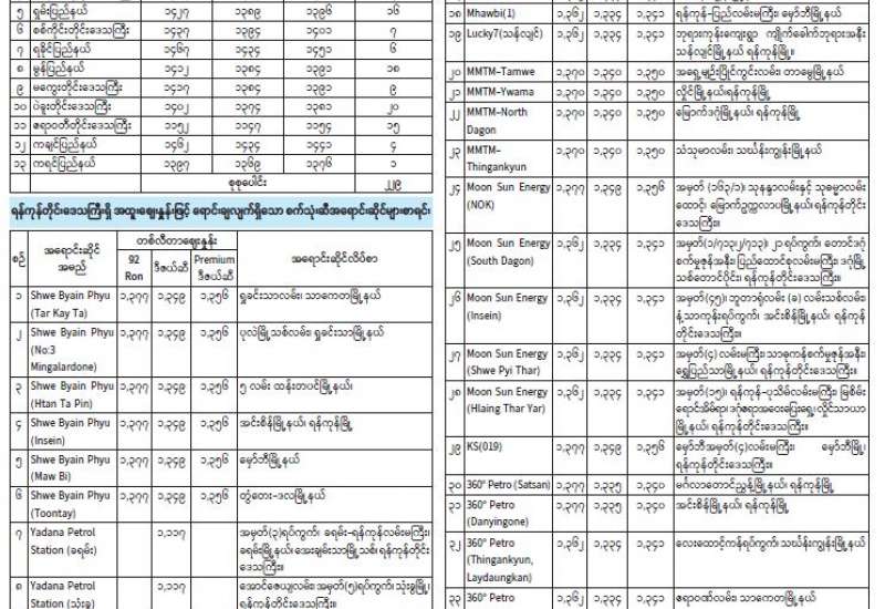 စီးပွားရေးနှင့် ကူးသန်းရောင်းဝယ်ရေးဝန်ကြီးဌာနနှင့် မြန်မာနိုင်ငံစက်သုံးဆီ တင်သွင်းဖြန့်ဖြူး ရောင်းချရေးအသင်းတို့ ပူးပေါင်းစီစဉ်မှုဖြင့် ပြည်သူများ သက်သာသောဈေးနှုန်းဖြင့် ဝယ်ယူရရှိနိုင်ရန်ရည်ရွယ်၍ ဗဟို ဘဏ်မှ ရည်ညွှန်းငွေလဲနှုန်းဖြင့် တိုက်ရိုက်ရောင်းချပေးသည့် နိုင်ငံခြားငွေဖြင့် မှာယူတင်သွင်းခဲ့သည့် စက်သုံးဆီများကို ၂၂.၉.၂၀၂၁ ရက်နေ့မှစတင်၍ တိုင်းဒေသကြီး/ပြည်နယ်များတွင် ရောင်းချပေးလျက်ရှိပြီး 92 Ron ၁၉၈၄၀၃၉၉ လီတာ၊ ဒီဇယ် ၁၂၈၆၉၄၄၁ လီတာနှင့် Premium ဒီဇယ်၁၈၆၂၇၅၇၁လီတာတို့ဖြန့်ဖြူး ရောင်းချပေးထားပြီး ဖြစ်သည်။
