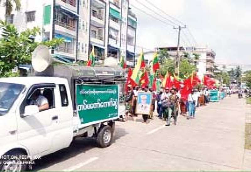 ၂၀၀၈ ခုနှစ် ဖွဲ့စည်းပုံအခြေခံဉပဒေနှင့်အညီ ဆောင်ရွက်လျက်ရှိသည့် နိုင်ငံတော် စီမံအုပ်ချုပ်ရေး ကောင်စီအား ထောက်ခံပွဲကို ယနေ့တွင် ရှမ်းပြည်နယ် (တောင်ပိုင်း)၊ တောင်ကြီးမြို့နှင့် ကွန်ဟိန်းမြို့၊ တနင်္သာရီတိုင်းဒေသကြီး၊ ပုလောမြို့နယ်၊ ရန်ကုန် တိုင်းဒေသကြီး၊ မရမ်းကုန်းမြို့နယ်၊ ဧရာဝတီတိုင်းဒေသကြီး၊ မော်လမြိုင်ကျွန်းမြို့၊ ဖျာပုံမြို့နှင့် ဘိုကလေးမြို့၊ ရခိုင်ပြည်နယ်၊ ရသေ့တောင်မြို့၊ ပဲခူးတိုင်းဒေသကြီး၊ ညောင်လေးပင်မြို့၊ ဘုရားကြီးမြို့နှင့် ကရင်ပြည်နယ်၊ သံတောင်ကြီးမြို့တို့၌ အသီးသီး ပြုလုပ်ကြပြီး ဆန္ဒဖော်ထုတ် ခဲ့ကြသည်။