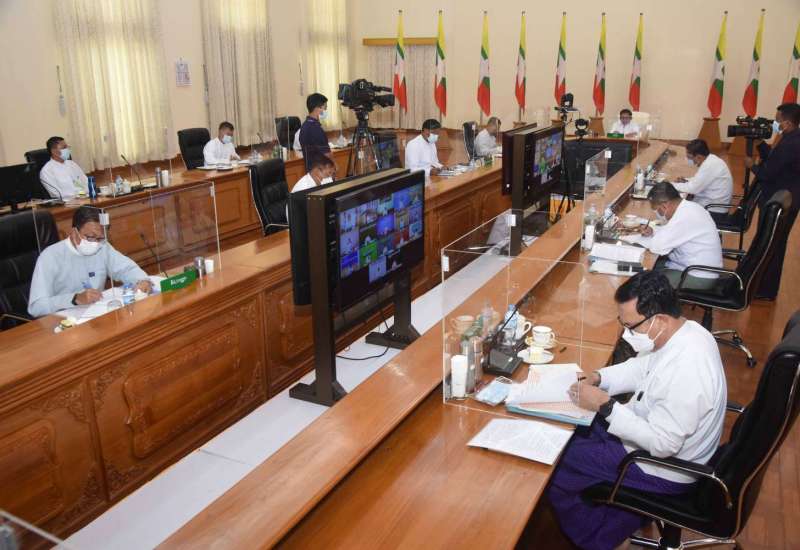 ကိုဗစ် - ၁၉ ရောဂါ ကာကွယ်၊ ထိန်းချုပ်၊ ကုသရေးဆိုင်ရာ (၁၃)ကြိမ်မြောက် ညှိနှိုင်း အစည်းအဝေးကို ယနေ့နံနက်ပိုင်းတွင် နေပြည်တော်ရှိ ဘုရင့်နောင်ရိပ်သာ အစည်းအဝေး ခန်းမ၌ ကျင်းပပြုလုပ်ရာ နိုင်ငံတော်စီမံအုပ်ချုပ်ရေးကောင်စီ ဥက္ကဋ္ဌ၊ ပြည်ထောင်စုသမ္မတ မြန်မာ နိုင်ငံတော်၊ နိုင်ငံတော်ဝန်ကြီးချုပ် ဗိုလ်ချုပ်မှူးကြီး မင်းအောင်လှိုင် တက်ရောက် အမှာစကားပြောကြားသည်။