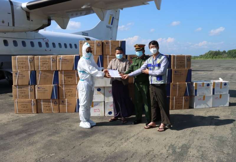 ကိုဗစ်-၁၉ရောဂါ ဓာတ်ခွဲအတည်ပြုပိုးတွေ့လူနာများနှင့် သီးသန့်စောင့် ကြည့်ရမည့်သူများအား တပ်မတော်ဆေးရုံများ၊ ပြည်သူ့ဆေးရုံများ၊ ကျန်းမာရေး ဌာနများနှင့် ကိုဗစ်စင်တာများတွင် ကျန်းမာရေးစောင့်ရှောက်မှု လုပ်ငန်းများကို တပ်မတော်သားဆရာ၀န်များ၊ ကျန်းမာရေး ၀န်ထမ်းများ၊ လူမှုရေး အသင်းအဖွဲ့များ ပူးပေါင်း၍ အင်တိုက်အား တိုက်ဆောင်ရွက်ပေးလျက် ရှိရာ ၎င်းလုပ်ငန်းများတွင် အထောက်အကူဖြစ် စေရန်အတွက် ကိုဗစ်-၁၉ ရောဂါ ကာကွယ် ဆေးများကို သတ်မှတ်အအေးလမ်းကြောင်း စံချိန်စံညွှန်းများအတိုင်း တပ်မတော်(လေ)မှ လေယာဉ်များ၊ မော်တော်ယာဉ်များဖြင့် ပို့ဆောင်ပေးလျက်ရှိသည်။