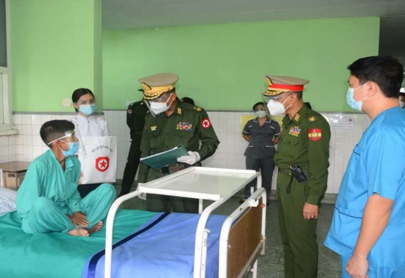 ရှမ်းပြည်နယ်(မြောက်ပိုင်း)၊ လားရှိုးမြို့ရှိ နယ်မြေခံတပ်မတော်ဆေးရုံ၊ ရန်ကုန် တိုင်းဒေသကြီး၊ မင်္ဂလာဒုံမြို့နယ်ရှိ တပ်မတော်အရိုးရောဂါအထူးကုဆေးရုံကြီး(ခုတင်-၅၀၀)နှင့် တပ်မတော် ဆေးရုံကြီး (ခုတင်-၁၀၀၀)၊ ဧရာဝတီတိုင်းဒေသကြီး၊ ပုသိမ်မြို့ရှိ နယ်မြေခံဆေးတပ်ရင်းတို့တွင် တက်ရောက်ဆေးကုသမှု ခံယူလျက်ရှိသော ဒေသခံတိုင်းရင်းသားပြည်သူများနှင့် အရာရှိ၊ စစ်သည်၊ မိသားစုများအား ယနေ့တွင် သက်ဆိုင်ရာ တိုင်းစစ်ဌာနချုပ်အသီးသီးမှ တိုင်းမှူးများ၊ ဒုတိယတိုင်းမှူးများနှင့် တာဝန်ရှိသူများက အသီးသီးသွားရောက်ကြည့်ရှု၍ တစ်ဦးချင်း၏ ရောဂါဖြစ်ပွားမှု၊ ဆေးဝါး ကုသပေးထားမှုနှင့် ကျန်းမာရေး တိုးတက်ကောင်းမွန်မှုအခြေအနေ များအား ရင်းရင်းနှီးနှီးမေးမြန်း အားပေးစကားပြောကြားပြီး စားသောက်ဖွယ်ရာများ ပေးအပ် သည်။