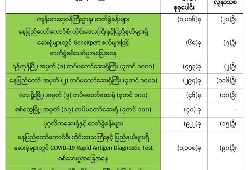 ကျန်းမာရေးဝန်ကြီးဌာနအနေဖြင့် နိုင်ငံအတွင်း ကူးစက်ဖြစ်ပွားနေသော COVID-19 ရောဂါ ကာကွယ်၊ ကုသ၊ ထိန်းချုပ်ရေးလုပ်ငန်းများကို အရှိန်အဟုန်မြှင့်ဆောင်ရွက်လျက်ရှိရာ ရောဂါ ထိန်းချုပ်ရေးလုပ်ငန်းများ အောင်မြင်နိုင်ရေးအတွက် ပြည်သူလူထုအနေဖြင့် ကျန်းမာရေး ဝန်ကြီးဌာနမှ ထုတ်ပြန်ထားသော COVID-19 ရောဂါ ကာကွယ်ထိန်းချုပ်ရေးဆိုင်ရာ စည်းကမ်းများကို စနစ်တကျ လိုက်နာဆောင်ရွက်ရန်လိုအပ်ပြီး COVID-19 ကာကွယ်ဆေးထိုးနှံမှု ခံယူခြင်းအား အထူးဂရုပြု ပူးပေါင်းဆောင်ရွက်ကြရန် လိုအပ်ပါသည်။