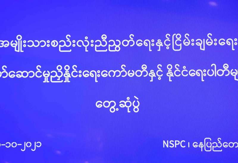 အမျိုးသားစည်းလုံးညီညွတ်ရေးနှင့် ငြိမ်းချမ်းရေးဖော်ဆောင်မှု ညှိနှိုင်းရေးကော်မတီ (NSPC) နှင့် နိုင်ငံရေးပါတီများ တွေ့ဆုံ ဆွေးနွေးပွဲကို ယနေ့နံနက်ပိုင်းက နေပြည်တော်ရှိ အမျိုးသား စည်းလုံးညီညွတ်ရေးနှင့် ငြိမ်းချမ်းရေးဖော်ဆောင်မှုဗဟိုဌာန အစည်းအဝေးခန်းမ၌ကျင်းပသည်။