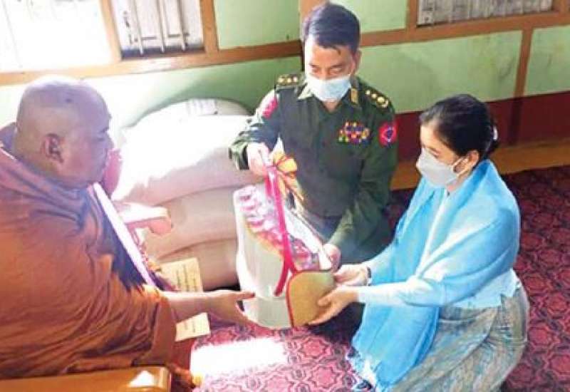 ကိုဗစ်-၁၉ ရောဂါ ကြိုတင်ကာကွယ်ရေးလုပ်ငန်းများ ဆောင်ရွက်နေသည့်ကာလ အတွင်း ဆွမ်းကိစ္စရပ်များ အဆင်ပြေစေရန်ရည်ရွယ်၍ တပ်မတော်(ကြည်း၊ရေ၊ လေ) အရာရှိ၊ စစ်သည်၊ အရာထမ်း၊ အမှုထမ်းများနှင့် စေတနာရှင်အလှူရှင်များက မြို့နယ် အသီးသီးရှိ ဘုန်းတော်ကြီးကျောင်းများ၊ သာသနာနွယ်ဝင် သီလရှင်ကျောင်းများနှင့် ဘာသာရေးကျောင်းများသို့ ဆွမ်းဆန်တော်၊ ဆီ၊ ဆား၊ ပဲ အမယ်(၄)မျိုးနှင့် လှူဖွယ် ပစ္စည်းများလှူဒါန်းခြင်း၊ နေ့ဆွမ်းများဆက်ကပ်လှူဒါန်းခြင်းနှင့် ကျန်းမာရေး စစ်ဆေး ပေးခြင်းများကို ဆောင်ရွက်လျက်ရှိသည်။