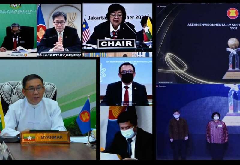 (၁၆) ကြိမ်မြောက် အာဆီယံပတ်ဝန်းကျင်ဆိုင်ရာ ဝန်ကြီးများအဆင့်အစည်းအဝေးနှင့် ဆက်စပ်အစည်းအဝေးများ (16th ASEAN Ministerial Meeting on Environment - 16th AMME and Related Meetings) ကို ယနေ့နံနက် ၈ နာရီခွဲတွင် အင်ဒိုနီးရှားနိုင်ငံက အိမ်ရှင်အဖြစ် ဗွီဒီယိုကွန်ဖရင့် စနစ်ဖြင့်ကျင်းပရာ သယံဇာတနှင့် သဘာဝပတ်ဝန်းကျင် ထိန်းသိမ်းရေးဝန်ကြီးဌာန ပြည်ထောင်စုဝန်ကြီး ဦးခင်မောင်ရီနှင့် တာဝန်ရှိသူများ တက်ရောက်ခဲ့ကြသည်။