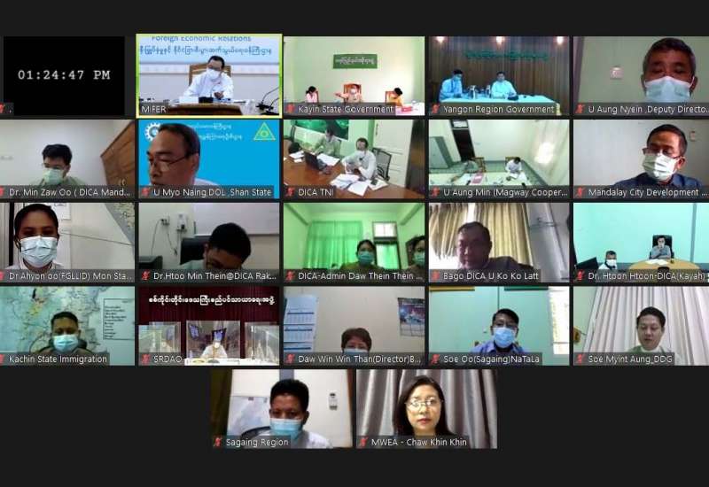 ကလေးအလုပ်သမား ပပျောက်ရေးဆိုင်ရာ ရန်ပုံငွေရှာဖွေရေးနှင့် ဘဏ္ဍာရေးလုပ်ငန်း ကော်မတီ၏ ပထမအကြိမ် လုပ်ငန်းညှိနှိုင်းအစည်းအဝေးကို ယနေ့တွင် နေပြည်တော်ရှိ ရင်းနှီးမြှုပ်နှံမှုနှင့် နိုင်ငံခြားစီးပွားဆက်သွယ်ရေးဝန်ကြီးဌာန၌ ဗွီဒီယိုကွန်ဖရင့်စနစ်ဖြင့် ကျင်းပသည်။