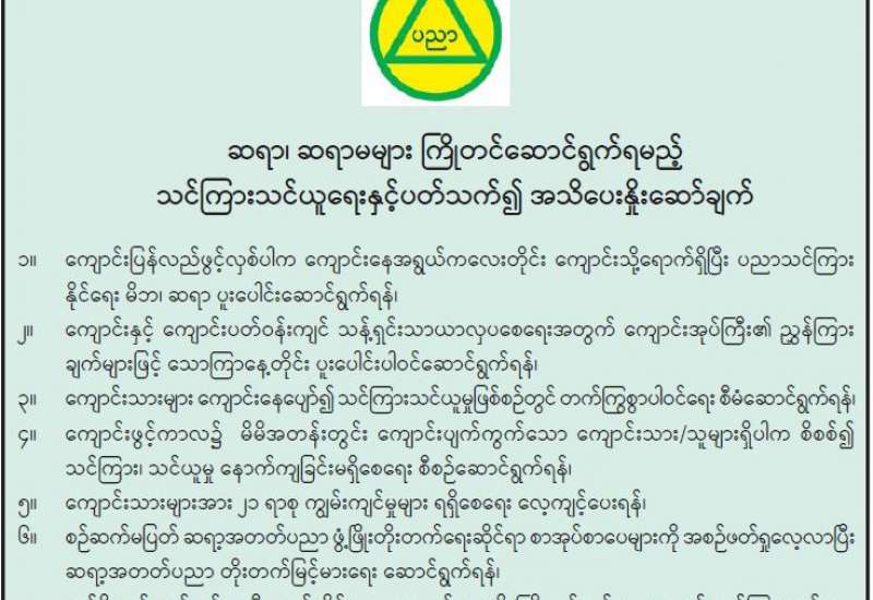 ကျန်းမာရေးဝန်ကြီးဌာနအနေဖြင့် နိုင်ငံအတွင်း ကူးစက်ဖြစ်ပွားနေသော COVID-19 ရောဂါ ကာကွယ်၊ ကုသ၊ ထိန်းချုပ်ရေးလုပ်ငန်းများကို အရှိန်အဟုန်မြှင့်ဆောင်ရွက်လျက်ရှိရာ ရောဂါထိန်းချုပ် ရေးလုပ်ငန်းများ အောင်မြင်နိုင်ရေးအတွက် ပြည်သူလူထုအနေဖြင့် -