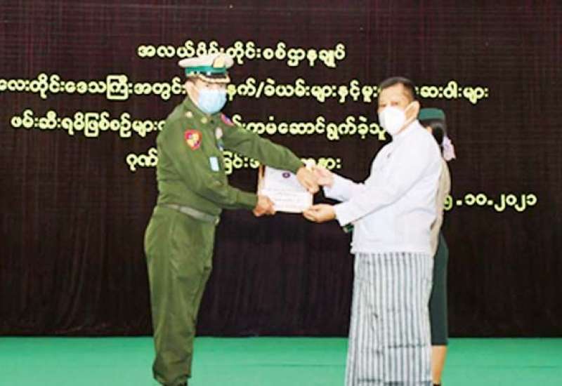 မန္တလေးတိုင်းဒေသကြီးအတွင်း လက်နက်/ခဲယမ်းများနှင့် မူးယစ်ဆေးဝါးများ ဖမ်းဆီးရမိခဲ့သည့် ဖြစ်စဉ်များတွင် စွမ်းစွမ်းတမံ ဆောင်ရွက်ခဲ့ကြသည့် လုံခြုံရေး တပ်ဖွဲ့ဝင်များအား ဂုဏ်ပြုချီးမြှင့်ခြင်းကို ယနေ့နံနက်ပိုင်းတွင် အလယ်ပိုင်းတိုင်း စစ်ဌာနချုပ်၊ ရန်အောင်မြင်ခန်းမ၌ ပြုလုပ်ရာ မန္တလေးတိုင်းဒေသကြီးဝန်ကြီးချုပ် ဦးမောင်ကို၊ အလယ်ပိုင်းတိုင်းစစ်ဌာနချုပ် တိုင်းမှူး ဗိုလ်ချုပ် ကိုကိုဦးနှင့် ဌာနဆိုင်ရာ တာဝန်ရှိသူများ၊ လုံခြုံရေးတပ်ဖွဲ့ဝင်များ တက်ရောက်ကြ သည်။