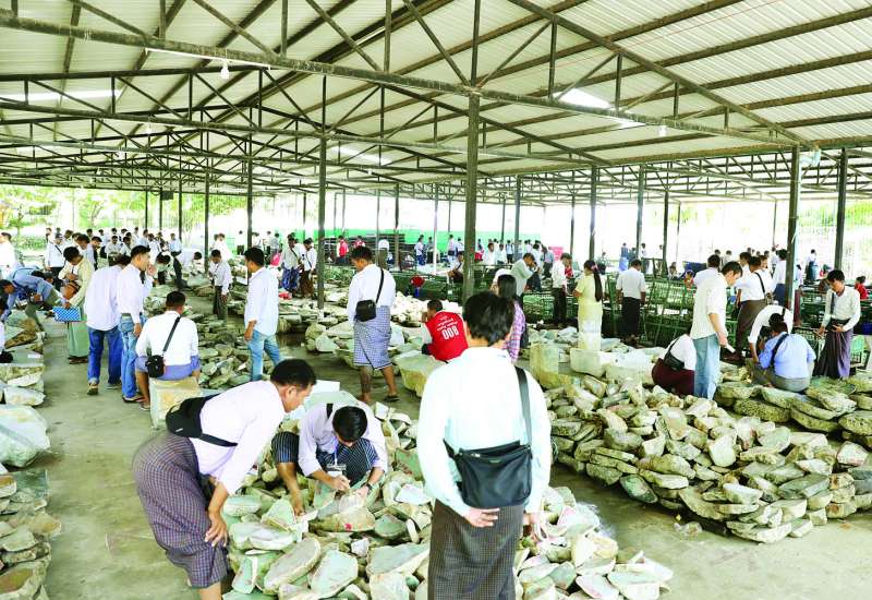 ၂၀၂၅ ခုနှစ် အကြိမ် (၆၀) မြောက် မြန်မာ့ကျောက်မျက်ရတနာပြပွဲနဝမနေ့ကို ယနေ့နံနက်ပိုင်းတွင် နေပြည်တော်ရှိ မဏိရတနာကျောက်စိမ်းခန်းမ၌ ဆက်လက်ကျင်းပရာ နံနက်ပိုင်းမှစတင်၍ ပြည်တွင်း၊ ပြည်ပရတနာကုန်သည်များသည် မဏိရတနာကျောက်စိမ်းခန်းမ အပြင်ဘက် သတ်မှတ်နေရာများအလိုက် ခင်းကျင်းပြသထားသည့် အုပ်စု (စီ) မှ ကျောက်စိမ်းအတွဲများကို စိတ်ကြိုက်လေ့လာကြည့်ရှုကြသည်။
