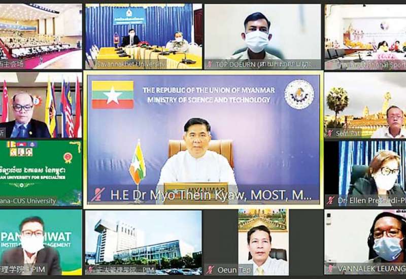 တရုတ်ပြည်သူ့သမ္မတနိုင်ငံ ကွမ်းရှီးကျွမ်းကိုယ်ပိုင်အုပ်ချုပ်ခွင့် ရဒေသ နန်နင်းမြို့၌ ယနေ့တွင် ဗီဒီယို ကွန်ဖရင့်စနစ်ဖြင့် ကျင်းပသည့် ၂၀၂၁ခုနှစ် တရုတ်-အာဆီယံ အသက်မွေးဝမ်းကျောင်း ပညာရေးပြပွဲနှင့် ဖိုရမ်ကို သိပ္ပံနှင့် နည်းပညာဝန်ကြီးဌာန ပြည်ထောင်စုဝန်ကြီး ဒေါက်တာမျိုးသိန်းကျော်တက်ရောက်၍ Video Message ဖြင့်အမှာ စကားပြောကြားသည်။