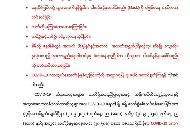 ကလေးနှင့် ဆယ်ကျော်သက်အရွယ်များတွင် ကိုဗစ် - ၁၉ ရောဂါ ဖြစ်ပွားမှု အခြေအနေနှင့် ပတ်သက်၍ ကျန်းမာရေးဝန်ကြီးဌာန ပြည်သူ့ကျန်းမာရေး ဦးစီးဌာန ဗဟိုကူးစက်ရောဂါ တိုက်ဖျက်ရေးဌာနခွဲမှ ညွှန်ကြားရေးမှူး ဒေါက်တာခင်ခင်ကြီးနှင့် တွေ့ဆုံမေးမြန်းထားသည်။