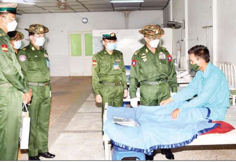 ကရင်ပြည်နယ်၊ ဘားအံမြို့ရှိ နယ်မြေခံတပ်မတော်ဆေးရုံ၌ တက်ရောက် ဆေးကုသမှုခံယူလျက်ရှိသော အရာရှိ၊ စစ်သည်၊ မိသားစုများနှင့် ဒေသခံ ပြည်သူများအား ယနေ့မွန်းလွဲပိုင်းတွင် ကာကွယ်ရေးဦးစီးချုပ်ရုံး(ကြည်း)မှ ဒုတိယဗိုလ်ချုပ်ကြီး အောင်စိုး၊ အရှေ့တောင်တိုင်းစစ်ဌာနချုပ်တိုင်းမှူး ဗိုလ်ချုပ် ကိုကိုမောင်နှင့် အဖွဲ့ဝင်များက သွားရောက်ကြည့်ရှု၍ တစ်ဦးချင်း၏ ရောဂါဖြစ်ပွားမှု၊ ဆေးဝါးကုသပေးထားမှုနှင့် ကျန်းမာရေးတိုးတက်ကောင်းမွန်မှု အခြေအနေများကို မေးမြန်းအားပေး စကားပြောကြားပြီး စားသောက်ဖွယ်ရာများ ပေးအပ်သည်။ ထို့နောက် ဆေးရုံအတွင်းလိုက်လံကြည့်ရှု၍ လိုအပ်သည် များ ညှိနှိုင်းဆောင်ရွက်ပေးသည်။