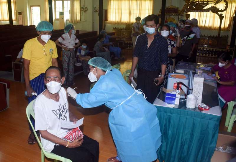 မြန်မာနိုင်ငံသဘင်အစည်းအရုံးမှ သဘင်ပညာရှင် အဖိုး/အဖွားများနှင့် တာဝန်ထမ်းဆောင်ဆဲ အဖွဲ့ဝင်များကို ယနေ့နံနက် ၁ဝ နာရီတွင် ရန်ကုန်တိုင်းဒေသကြီး၊ ဒဂုံမြို့သစ် (တောင်ပိုင်း) မြို့နယ်ရှိ အမျိုးသားယဉ်ကျေးမှုနှင့် အနုပညာတက္ကသိုလ် (ရန်ကုန်)တွင် ကျန်းမာရေးဝန်ကြီးဌာနမှ ကျန်းမာရေးဝန်ထမ်း ဆရာဝန်/ ဆရာမများက ကိုဗစ်-၁၉ ကာကွယ်ဆေးထိုးနှံ ဆောင်ရွက် ပေးသည်။