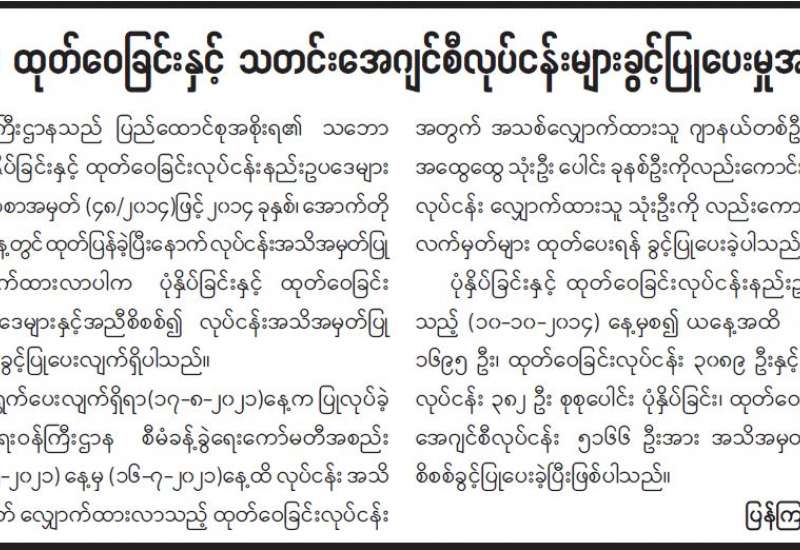 စီးပွားရေးနှင့်ကူးသန်းရောင်းဝယ်ရေး ဝန်ကြီးဌာနအနေဖြင့် ကိုဗစ်-၁၉ ကာကွယ်၊ ထိန်းချုပ်၊ ကုသရေးဆိုင်ရာပစ္စည်းများကို အများပြည်သူရုံးပိတ်ရက်များတွင် လေကြောင်း၊ ရေကြောင်းနှင့် နယ်စပ်ကုန်သွယ်ရေးစခန်းများမှ စဉ်ဆက်မပြတ် အဆင်ပြေချောမွေ့စွာ တင်သွင်းနိုင်ရေးအတွက် ပိတ်ရက်မရှိ စီစဉ်ဆောင်ရွက်ပေးလျက်ရှိရာ ဩဂုတ် ၈ ရက်တွင် ရန်ကုန်အပြည်ပြည်ဆိုင်ရာ လေဆိပ်မှ Oxygen Concentrator (၆၃၅) ခု၊ Test Kit (၁၀၀၀) ၊ PPE ဝတ်စုံ (၄၄၀) နှင့် ဆိပ်ကမ်းများမှ အောက်ဆီဂျင် (အရည်)အိုး (၁) တန်၊ အောက်ဆီဂျင် (အိုးခွံ) (၆၁) လုံးအပါအဝင် မူဆယ်၊ ချင်းရွှေဟော်၊ မြဝတီ ၊ ကော့သောင်း၊ ထီးခီး၊ ကန်ပိုက်တီ၊ လွယ်ဂျယ် ကုန်သွယ်ရေး စခန်းများမှ အောက်ဆီဂျင်(အရည်) Bowserယာဉ်(၂)စီးဖြင့် (၃၉) တန်၊ အောက်ဆီဂျင် (အရည်) အိုးဖြင့် (၁၇) တန်၊ အောက်ဆီဂျင် (ဓာတ်ငွေ့) အိုးဖြင့် (၀ ဒသမ ၀၇) တန်၊ အောက်ဆီဂျင်အိုး(အခွံ) (၅၉၁၇)ခု၊ အိမ်သုံးအောက်ဆီဂျင်စက် (Oxygen Concentrator) (၉၃၉) ခု၊ Covid Test Kit (၄၀၀၀) ၊ PPE ဝတ်စုံ (၈၈၁၀) နှင့် နှာခေါင်းစည်း(Mask) (၇၃) တန် တင်သွင်းနိုင်ခဲ့သည်။ အထက်ပါ ပစ္စည်းများကို ကုမ္ပဏီ (၂၁) ခုမှ ယာဉ်စီးရေ (၅၀) ဖြင့် တင်သွင်းခဲ့ခြင်းဖြစ်သည်။