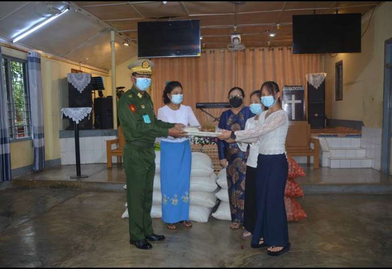ကိုဗစ်- ၁၉ ရောဂါ ကာကွယ်၊ ထိန်းချုပ်၊ ကုသရေးလုပ်ငန်းများကို အရှိန်အဟုန်မြှင့် ဆောင်ရွက်လျက်ရှိရာ သွားလာမှုကန့်သတ်ချက်များကြောင့် စစ်မှုထမ်း ဟောင်းအဖွဲ့ဝင်များ၊ မြန်မာနိုင်ငံရဲတပ်ဖွဲ့ဝင်များ၊ ပြည်သူ့စစ်(ဌာနေ)တပ်ဖွဲ့ဝင်များ၊ ကျန်းမာရေးဝန်ထမ်းများ၊ စေတနာ့ဝန်ထမ်း Volunteerများနှင့် ဒေသခံပြည်သူများ စားရေးအဆင်ပြေစေရေးအတွက် စေတနာရှင်အလှူရှင်များ၊ သက်ဆိုင်ရာတိုင်းစစ် ဌာနချုပ်များမှ တာဝန်ရှိသူများက စားသောက်ဖွယ်ရာများ ထောက်ပံ့ပေးအပ် လျက်ရှိသည်။