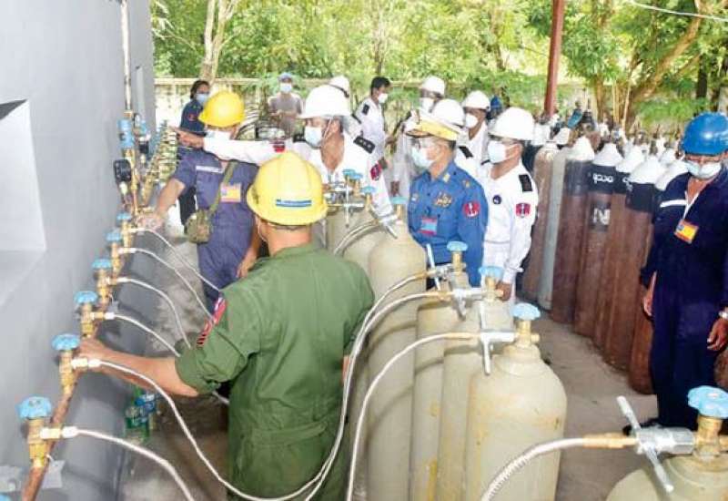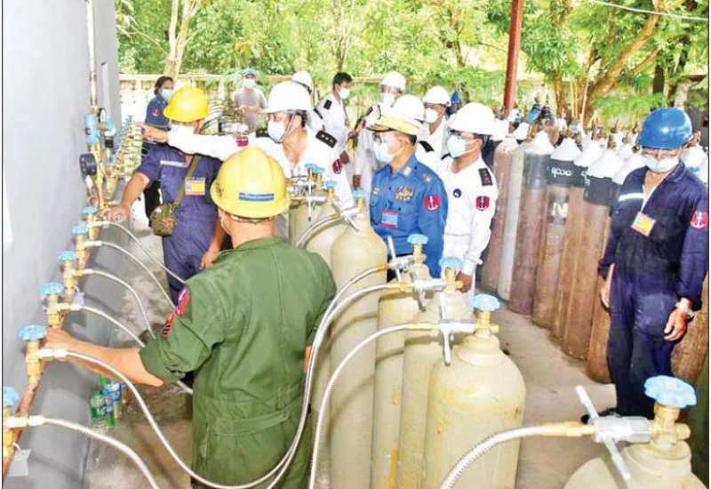 ကိုဗစ်-၁၉ ရောဂါ ကာကွယ်၊ ထိန်းချုပ်၊ ကုသရေး လုပ်ငန်းများအတွက် အောက်ဆီဂျင်လိုအပ်ချက်များ ကို ပိုမိုဖြည့်တင်းပေးနိုင်ရန်အတွက် သန်လျင် တပ်နယ်ရှိ ရေတပ်သင်္ဘောကျင်းဌာနချုပ်တွင် KZO100 အမျိုးအစား Oxygen Plant အား ဇူလိုင် ၂၁ ရက်မှစတင်၍ တပ်မတော်(ရေ)မှ အင်ဂျင်နီယာ များဖြင့် တပ်ဆင်စမ်းသပ်မောင်းနှင်ခဲ့ရာ ယနေ့တွင် အောက်ဆီဂျင်ဓာတ်ငွေ့များ စတင်ထုတ်လုပ် ဖြည့်တင်းပေးနိုင်ခဲ့ပြီဖြစ်ကြောင်း သိရသည်။