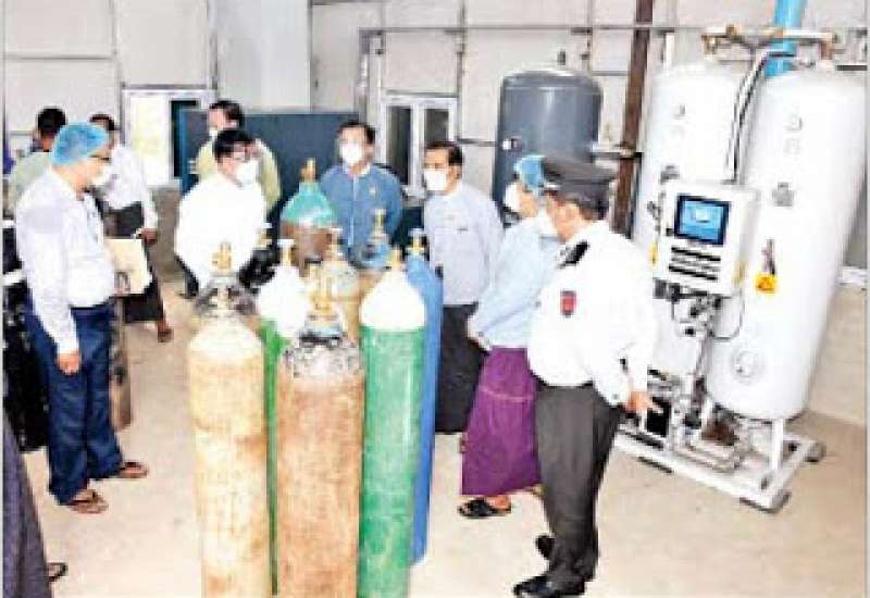 နေပြည်တော် ပုဗ္ဗသီရိမြို့နယ် တပင်ရွှေထီးရပ်ကွက်ရှိ နေပြည်တော် ပြည်သူ့ ဆေးရုံကြီး ခုတင် (၃၀၀) ဝန်းအတွင်း တည်ဆောက်ထားသည့် ကျန်းမာရေး ဝန်ကြီးဌာန၊ ကုသရေးဦးစီးဌာန အောက်ဆီဂျင် ထုတ်လုပ်သည့်စက်ရုံ (Liquid Oxygen Plant) (နေပြည်တော်) ကို ယနေ့နံနက်ပိုင်းတွင် စတင်ဖွင့်လှစ်ရာ ကျန်းမာရေးဝန်ကြီးဌာန ပြည်ထောင်စုဝန်ကြီး ဒေါက်တာသက်ခိုင်ဝင်း၊ ဆောက်လုပ်ရေး ဝန်ကြီးဌာန ပြည်ထောင်စုဝန်ကြီး ဦးရွှေလေး၊ နေပြည်တော်တိုင်းစစ်ဌာနချုပ် တိုင်းမှူး ဗိုလ်ချုပ်ဇော်မျိုးတင်၊ နေပြည်တော်ကောင်စီဝင် ဗိုလ်မှူးကြီးမင်းနောင်နှင့် တာဝန်ရှိသူများသည် စက်ရုံ အတွင်း အောက်ဆီဂျင် ထုတ်လုပ်နေမှု အခြေအနေကို လှည့်လည်ကြည့်ရှုစစ်ဆေးရာ ဆေးရုံအုပ်ကြီး ဒေါက်တာသီတာစိုးနှင့် တာဝန်ရှိသူများက အောက်ဆီဂျင် ထုတ်လုပ်မှု အဆင့်ဆင့်၊ ထုတ်လုပ်နိုင်မှုနှင့် ဖြန့်ဖြူးသွားမည့် အခြေအနေများကို လိုက်လံရှင်းလင်း ပြသကြသည်။