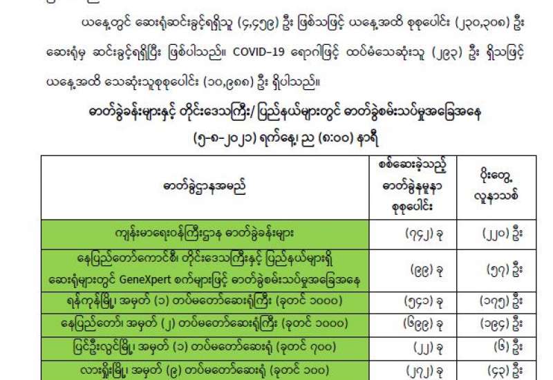 ပြည်ပနိုင်ငံများမှ ဝင်ရောက်လာသည့် မြန်မာနိုင်ငံသားများကို နယ်စပ်ဂိတ် အသီးသီးတွင် လက်ခံဆောင်ရွက်ပေးလျက်ရှိရာ ဩဂုတ် ၄ ရက်နှင့် ယနေ့ တို့တွင် ရှမ်းပြည်နယ်(မြောက်ပိုင်း)၊ မူဆယ်မြို့ရှိ နယ်စပ်ဂိတ်မှ အမျိုးသား ၂၂၂ ဦး၊ အမျိုးသမီး ၁၇၄ ဦး၊ စုစုပေါင်း ၃၉၆ ဦး တို့ကိုလည်းကောင်း၊ ချင်းရွှေဟော်မြို့ရှိ နယ်စပ်ဂိတ်မှ အမျိုးသား ၁၅ ဦး၊ အမျိုးသမီး ၁၁ ဦး၊ စုစုပေါင်း ၂၆ ဦး တို့ကိုလည်းကောင်း၊ မြဝတီမြို့ရှိ နယ်စပ်ဂိတ်မှ အမျိုးသား ၁၂၄ ဦး၊ အမျိုးသမီး ၈၀ ဦး၊ စုစုပေါင်း ၂၀၄ ဉီး တို့ကို လည်းကောင်း အသီးသီးလက်ခံခဲ့ကြသည်။