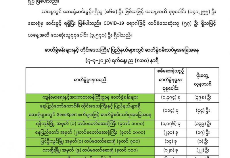 COVID-19 ရောဂါစောင့်ကြပ်ကြည့်ရှုမှုနှင့်ပတ်သက်၍ သတင်းထုတ်ပြန်ခြင်း (၇-၇-၂၀၂၁) ရက်နေ့၊ ည (၈:၀၀)နာရီ