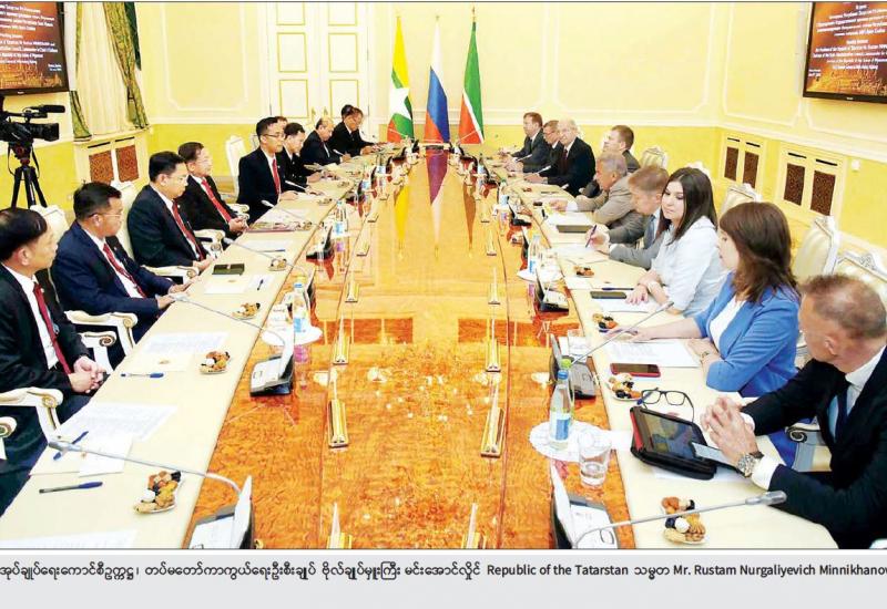နိုင်ငံတော်စီမံအုပ်ချုပ်ရေးကောင်စီ ဥက္ကဋ္ဌ၊ တပ်မတော်ကာကွယ်ရေးဦးစီးချုပ် ဗိုလ်ချုပ်မှူးကြီး မင်းအောင်လှိုင်သည် စစ်သံမှူး ဗိုလ်မှူးချုပ် ကျော်စိုးမိုးနှင့် ကိုယ်စား လှယ် အဖွဲ့ဝင်များ လိုက်ပါ၍ ဇွန် ၂၅ ရက် ဒေသစံတော်ချိန် ညနေပိုင်းတွင် Republic of the Tatastan သမ္မတ Mr. Rustam Nurgaliyevich Minnikhanov နှင့် တွေ့ဆုံဆွေးနွေးသည်။.