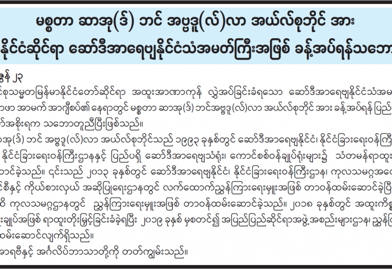 ပြန်ကြားရေးဝန်ကြီးဌာန၊ ပြန်ကြားရေးနှင့် ပြည်သူ့ဆက်ဆံရေးဦးစီးဌာနက မီဒီယာနှင့် သတင်း အချက်အလက်ဆိုင်ရာသိနားလည်မှုသင်တန်းကို ဇွန်လ ၂၃ ရက်မှစ၍ အွန်လိုင်းစနစ်ဖြင့် ဖွင့်လှစ်ပို့ချလျက်ရှိကြောင်း သိရသည်။