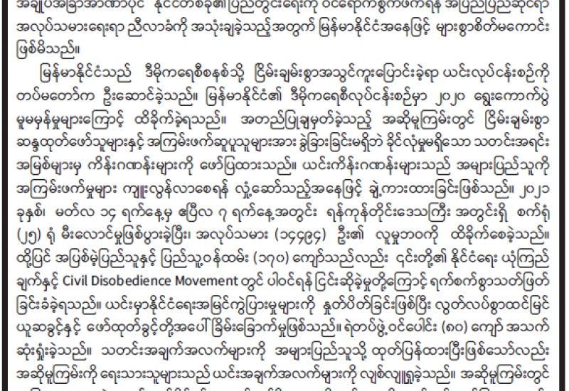 တိုင်းဒေသကြီး၊ ပြည်နယ်များရှိ မြို့နယ်အချို့တွင် အုပ်ချုပ်ရေးပိုင်းဆိုင်ရာ တာဝန်ရှိသူများ၊ နိုင်ငံ့ဝန်ထမ်းများနှင့် အေးချမ်းစွာ နေထိုင်နေကြသော ပြည်သူလူထုအချို့အား လူထုအတွင်း အကြောက်တရားများလွှမ်းမိုးလာစေရန်နှင့် ငါနှင့်မတူ ငါ့ရန်သူဟူသည့် တစ်ဖက်သက်အစွန်းရောက် ဂိုဏ်းဂဏစွဲအပေါ် အခြေခံကာ လက်နက်ကိုင်အကြမ်းဖက်သူများက သေနတ်များ၊ တုတ်/ဓားများ၊ လက်လုပ်ဗုံး၊ လက်ပစ်ဗုံးများအသုံးပြုကာ အကြောင်းမဲ့ ရက်စက်စွာ လုပ်ကြံသတ်ဖြတ်ခဲ့ကြောင်း သိရသည်။