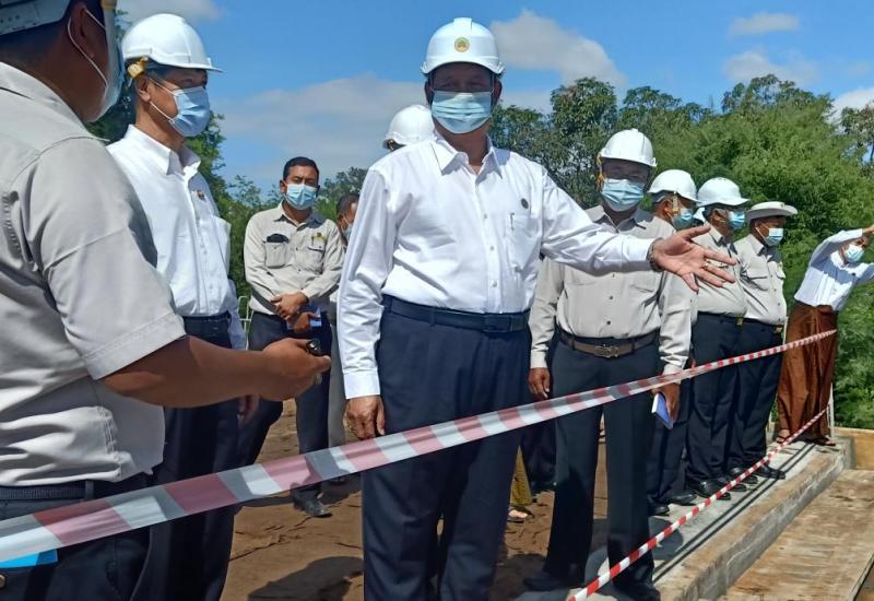 ဆောက်လုပ်ရေးဝန်ကြီးဌာန၊ ပြည်ထောင်စုဝန်ကြီး ဦးရွှေလေးသည် ယနေ့ နံနက်ပိုင်းတွင် မန္တလေးတိုင်းဒေသကြီး၊ ကျောက်ဆည်ခရိုင်၊ တံတားဦး မြို့နယ်တွင် တံတားဦးစီးဌာန၊ တံတား အထူးအဖွဲ့ (၄) မှ တာဝန်ယူ တည်ဆောက်နေသော အရှည် ပေ ၃၀၀ ပန်းဆေးချောင်း တံတား တည်ဆောက်ရေးလုပ်ငန်းများ ဆောင်ရွက်နေမှုအခြေအနေတို့ ကို ကြည့်ရှုစစ်ဆေးရာ ပြည်ထောင်စုဝန်ကြီး က လုပ်ငန်းများ အရည်အသွေးပြည့်မီရေး အထူးအလေးထား ဆောင်ရွက်ရန်၊ ယခင်တံတား ဟောင်းကို စနစ်တကျ ဖြုတ်သိမ်းပြီး တိုင်းဒေသကြီးအတွင်းရှိ ကျေးလက်လမ်းပေါ်ရှိ တံတားအဖြစ် အကျိုးရှိစွာ ပြန်လည် အသုံးပြုနိုင်ရေး စီစဉ်ဆောင်ရွက်ရန်တို့ကိုမှာကြားကာ Over Lay Slab လုပ်ငန်းများ ဆောင်ရွက် ပြီးစီးမှု၊ ကျန်ရှိသည့် Girder လုပ်ငန်းများ ဆောင်ရွက်နေမှုတို့ကို ကြည့်ရှုစစ်ဆေးသည်။