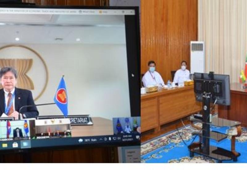 အာဆီယံစွမ်းအင်ဆိုင်ရာဝန်ကြီးများနှင့် ဂျပန်နိုင်ငံ စီးပွားရေး၊ ကုန်သွယ်ရေးနှင့် စက်မှုဝန်ကြီးဌာန ဝန်ကြီးတို့အကြား စွမ်းအင်ကဏ္ဍဆိုင်ရာ ပူးပေါင်းဆောင်ရွက်မှုကိစ္စရပ်များ နှင့်ပတ်သက်သည့် အထူးအစည်းအဝေး (The Special Meeting of ASEAN Ministers on Energy and Minister of Economy, Trade and Industry of Japan - SPECIAL AMEM-METI) ကို ယနေ့နံနက်ပိုင်းတွင် ဗီဒီယိုကွန်ဖရင့်စနစ်ဖြင့် ကျင်းပရာ လျှပ်စစ်နှင့်စွမ်းအင် ဝန်ကြီးဌာန ပြည်ထောင်စုဝန်ကြီး ဦးအောင်သန်းဦးနှင့် တာဝန်ရှိသူများ နေပြည်တော်မှ ပါဝင် တက်ရာက်သည်။