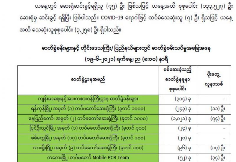 (၂၀၂၁ ခုနှစ်၊ ဇွန်လ (၂၀)ရက်နေ့ နံနက်(၇:၀၀)နာရီအချိန် ထုတ်ပြန်ချက်)
