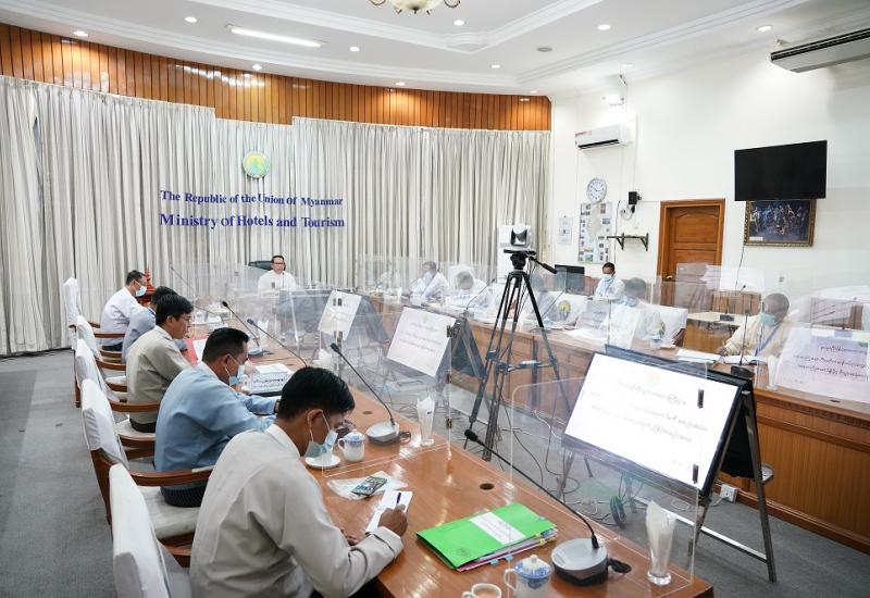 ခရီးသွားလုပ်ငန်းဖွံ့ဖြိုးတိုးတက်ရေး ဆောင်ရွက်မည့်လုပ်ငန်းစဉ်များ၊ ခရီးသွားလုပ်ငန်း ကော်မတီနှင့် အမျိုးသား ခရီးသွား လုပ်ငန်းဖွံ့ဖြိုးတိုးတက်ရေးဗဟိုကော်မတီအစည်းအဝေးများ ကျင်းပရေးဆိုင်ရာ လုပ်ငန်း ညှိနှိုင်း အစည်း အဝေးကို ယနေ့နံနက်ပိုင်းတွင် ဟိုတယ်နှင့် ခရီးသွား ဝန်ကြီးဌာန နီလာအစည်းအဝေးခန်းမ၌ ကျင်းပ သည်။