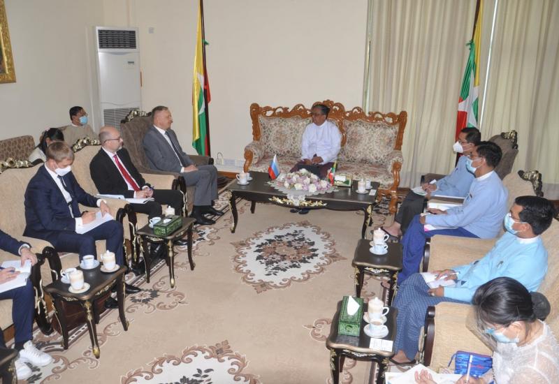 စက်မှုဝန်ကြီးဌာန၊ ပြည်ထောင်စုဝန်ကြီး ဒေါက်တာချာလီသန်းသည် မြန်မာနိုင်ငံ ဆိုင်ရာရုရှားနိုင်ငံ သံအမတ်ကြီး H. E. Dr. Nikolay Listopadov ဦးဆောင်သော အဖွဲ့ကို ယနေ့နံနက် ၁၀ နာရီတွင် ရုံးအမှတ်(၃၀)ရှိ ဧည့်ခန်းမ၌ လက်ခံ တွေ့ဆုံသည်။