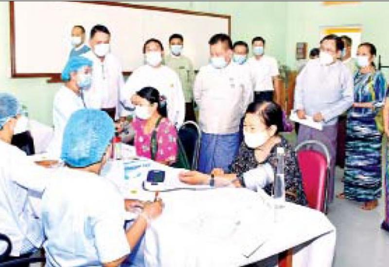 မန္တလေးတိုင်းဒေသကြီး စီမံအုပ်ချုပ်ရေးကောင်စီ ဥက္ကဋ္ဌ ဦးမောင်ကိုသည် ယနေ့နံနက်ပိုင်းတွင် မန္တလေးတက္ကသိုလ်မှ ဆရာ ဆရာမများနှင့် ပညာရေးဝန်ထမ်းများအား ကိုဗစ်-၁၉ ရောဂါ ကာကွယ်ဆေး (ပထမအကြိမ်) ထိုးနှံပေးရန် ဆရာ ဆရာမများနှင့် ပညာရေးဝန်ထမ်းများကို ကာကွယ် ဆေးမထိုးမီ ကျန်းမာရေးစစ်ဆေးပေးနေမှု၊ ကာကွယ် ဆေးထိုးနှံပေးနေမှုများကို လိုက်လံကြည့်ရှုအားပေး ရာ တိုင်းဒေသကြီး ပြည်သူ့ကျန်းမာရေးနှင့် ကုသရေး ဦးစီးမှူးနှင့် မန္တလေးတက္ကသိုလ် ပါမောက္ခချုပ်တို့က ကာကွယ်ဆေး ထိုးနှံနေမှုများကို လိုက်လံရှင်းလင်း ပြသသည်။