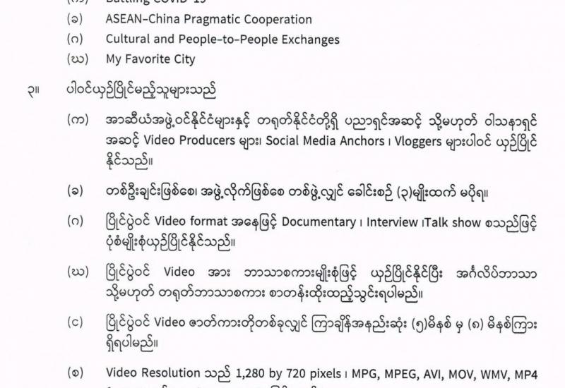 ဒုတိယအကြိမ်မြောက် အာဆီယံ-တရုတ် “Friend and Cooperation” ဇာတ်ကားတိုပြိုင်ပွဲဖိတ်ခေါ် ခြင်း