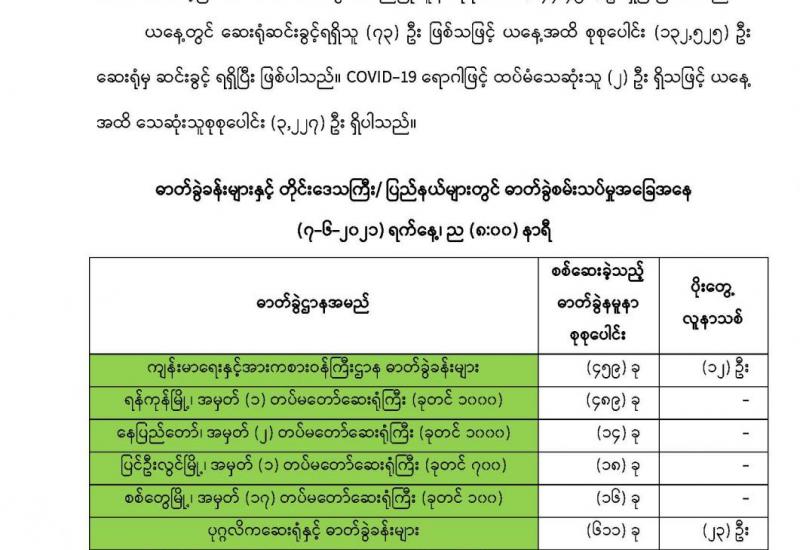 ကိုဗစ်-၁၉ ကပ်ရောဂါပိုးတွေ့ လူနာများ တွေ့ရှိမှုရာခိုင်နှုန်းများ ရုတ်တရက်မြင့်တက်လာမှုကို အမှတ်တမဲ့မနေကြဘဲ ပြည်သူ အချင်းချင်း အပြန်အလှန်အသိပေး၊ သတိပေးကြရန် လိုအပ်နေပြီ ဖြစ်သည်။ စစ်ကိုင်းတိုင်းဒေသကြီးနှင့် ချင်းပြည်နယ်တို့တွင်ရှိသည့် မြို့နယ်အချို့တို့တွင် ရောဂါဖြစ်ပွားမှုများ အစုလိုက် အပြုံလိုက်တွေ့ရှိခြင်း၊ ပိုးတွေ့လူနာအရေအတွက် ရုတ်တရက် မြင့်တက်လာခြင်း တို့ ကြောင့် နေအိမ်တွင် နေထိုင်ရေးအစီအစဉ် Stay at Home သတ်မှတ်ခဲ့သလို ပြည်တွင်းလေကြောင်း ခရီးစဉ်အချို့ကိုလည်း ယာယီရပ်နားထားခဲ့ရသည်။