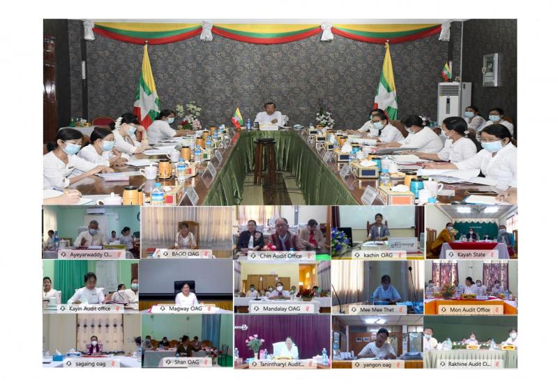 ပြည်ထောင်စုစာရင်းစစ်ချုပ်နှင့် တိုင်းဒေသကြီး/ပြည်နယ်စာရင်းစစ်ချုပ်ရုံး တာဝန်ခံ ညွှန်ကြားရေးမှူးများနှင့် တွေ့ဆုံပွဲကို ယနေ့နံနက် ၁၀ နာရီတွင် ပြည်ထောင်စုစာရင်းစစ်ချုပ် ရုံး၊ အစည်းအဝေး ခန်းမ၌ Virtual System ဖြင့် ကျင်းပသည်။