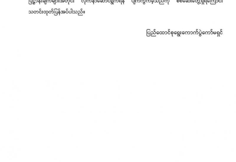 နိုင်ငံတော်သို့ အခွန်ပေးဆောင်နေကြသော ကုမ္ပဏီအခွန်ထမ်းများ၏ အခွန်ပေးသွင်းရာတွင် ငွေသား/ ချက် လက်မှတ်ဖြင့် ပေးသွင်းနေမှုအစား အီလက်ထရောနစ် ငွေပေးချေမှုစနစ်များဖြင့် ပြောင်းလဲ ကျင့်သုံးသွားမည့် အစီအစဉ်ကို အသိပေးကြေညာခြင်း