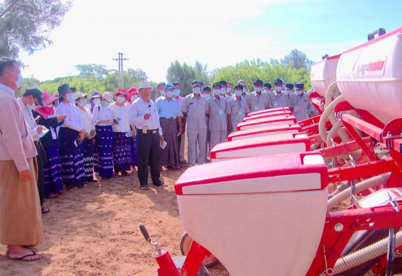 ဝါစိုက်ပျိုးရန် မြေပြုပြင်ခြင်း၊ မျိုးစေ့ချခြင်း၊ ဆေးဖြန်းခြင်းလုပ်ငန်းများတွင် နည်းပညာသစ် စက်ကိရိယာများ အသုံးပြုဆောင်ရွက်မှုအား စိုက်ပျိုးရေးဦးစီးဌာနနှင့် စက်မှုလယ်ယာဦးစီးဌာနတို့ ပူးပေါင်းဆောင်ရွက်မှု ကွင်းသရုပ်ပြပွဲကို မေ(၂၄)ရက်က မန္တလေးတိုင်းဒေသကြီး၊ ဝမ်းတွင်းမြို့နယ်၊ ဝါသုတေသနနှင့် နည်းပညာဖွံ့ဖြိုးရေးခြံ (ရွှေတောင်ခြံ)၌ ကျင်းပရာ မိတ္ထီလာ စက်မှုလယ်ယာ ဗဟိုသင်တန်းကျောင်းမှ နည်းပညာသစ် လယ်ယာသုံးစက်ကိရိယာများ ကိုင်တွယ်ထိန်းသိမ်းမှု သင်တန်း တက်ရောက်လျက်ရှိသည့် သင်တန်းသားများ၊ မိတ္ထီလာ၊ ကျောက်ဆည်၊ ပြင်ဦးလွင် မြို့နယ်များမှ လယ်ယာဝန်ဆောင်မှုအသင်းဝင်တောင်သူများ တက်ရောက် လေ့လာခဲ့ကြသည်။